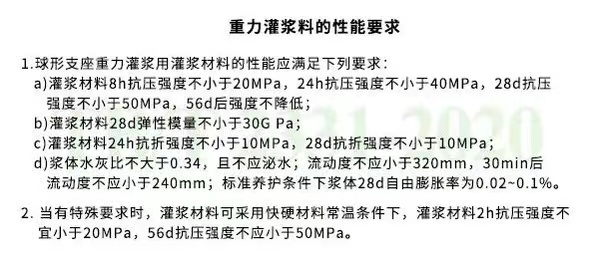 支座灌浆料的执行的标准为TB/T 2331-2020《铁路桥梁橡胶支座》,技术参数如下: