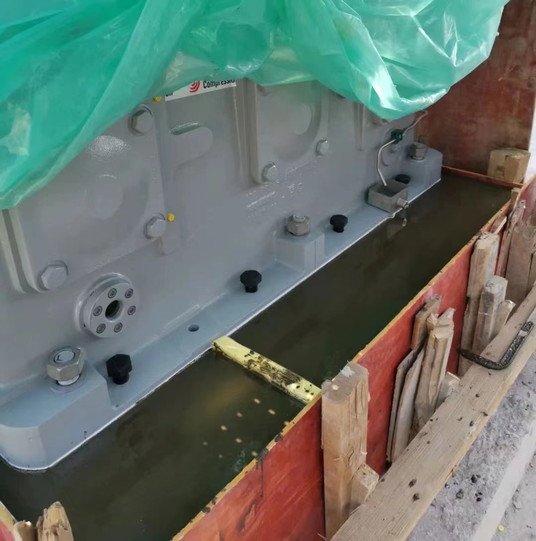 1、基础处理:打扫设备根底外表,不得有碎石、浮浆、灰尘、油污和脱模剂等杂物。灌浆前24h,设备根底外表应充分润湿。灌浆前1h,应吸干积水。